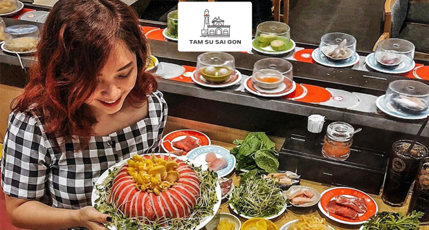 Đến đây, bạn chỉ cần ngồi một chỗ, những món nhúng lẩu sẽ theo băng chuyền đến chỗ bạn. Việc của bạn là thích món nào thì bạn sẽ lấy món đó và thưởng thức thôi. Hình thức ăn buffet này rất tiện lợi vì bạn không cần phải đợi nhân viên phục vụ hay chen chúc tại các quầy để lấy món.